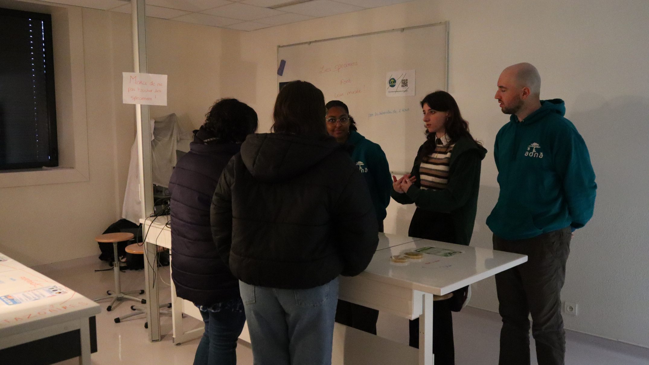 Ce samedi 28 février, 9 adhérent.e.s (Emma Aubert, Romain Cousin–Roche, Ambre Durin, Kévin Gatignol, Chelsy Jaleme, Pierrick Kruijsen, Andréa Neny, Thilo Roche et Mélanie Vray) se sont relayés tout au long de la journée afin d’accueillir les futurs étudiants en Biologie.