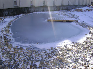 Les températures avoisinant les -5°C ont entièrement gelé la mare.