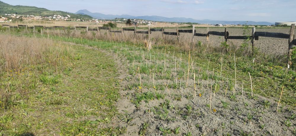 Premier désherbage du conservatoire des blés à Sarliève, 29-04-26