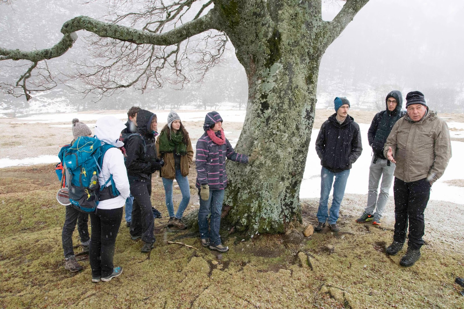 Arrivés vendredi soir sous le vent glacé des montagnes nous avons posé nos bagages et (re)découvert les longs couloirs de la Station Biologique de Besse avant de partager le repas apporté par chacun. Notre régime alimentaire du week-end fut composé de fromages, fromages, fromages et pommes de terre… à commencer par un aligot le soir même de notre arrivée ! Dès la fin du repas, le soleil, déjà absent, à laisser place à la lune propice pour jouer au « Loup Garou » jusqu’à tard dans la nuit. Samedi matin, Eric VALLE conservateur de la Réserve Naturelle de la Vallée de Chaudefour nous attendait pour une randonnée. Par chance, en allant le rejoindre nous avons croisé une bande de jeunes mouflons avec leur maman sur la route ! Nous avons espéré que les nuages se lèvent mais en vain. Même avec la neige nous n’avons pas eu peur d’arpenter les chemins enneigés avec les commentaires et anecdotes de notre guide. Au milieu du cirque, la neige et le vent ne nous ont laissé aucun répit, mais nous avons réussi à observer quelques chamois avec la longue vue !