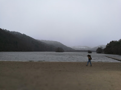 Dimanche matin, réveil sous 5 cm de neige fraiche puis randonnée autour du Lac Chambon où nous avons pu voir des cormorans, buses et autres oiseaux. De retour sur Murol nous avons trouvé quelques primevères fleuris et nous tentons une montée au château pour manger le pic nique mais sous un vent force 5, impossible. Un petit abris nous a finalement permis de finir le fromage avant de retourner sur Clermont-Ferrand.